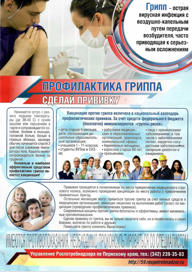 Сделайте прививку против гриппа до начала эпидемического сезона.